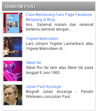 Kali ini mau berbagi bagaimana membuat recent post random/mengacak dengan thumbail.. mungkin ini bisa membantu sobat kalau ada posting yang lama dan jarang di lihat orang lain lagi, dengan adanya recent post ini, karena berkerja menampilkan posting secara random, ada kesempatan posting sobat yang sudah lama dan kusam akan muncul kembali dan pengunjung pun bisa melihatnya juga.. lumayankan untuk menambahkan popularitas untuk post sobat yang sudah lama.